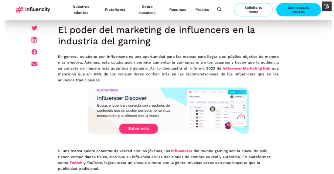 Los enlaces internos y externos son como los mejores aliados de tu estrategia de contenido SEO ya que ayudan a que los usuarios pasen más tiempo en tu web y, de paso, le dicen a Google que tu contenido es relevante. Influencity lo tiene claro y lo demuestra en su artículo “Por qué tu agencia no puede ignorar el gaming en sus estrategias de marketing”.