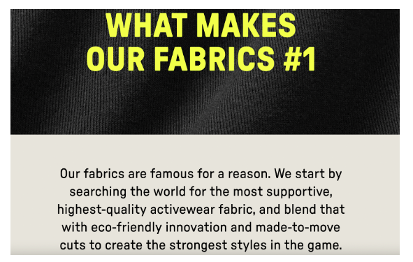 For Fabletics, their supportive yet eco-friendly fabric innovations are a unique value proposition.