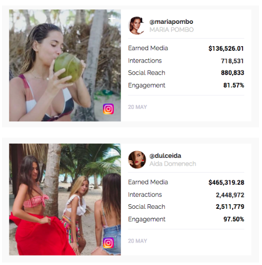 Results via Influencity’s software of @maripombo and @aidadomenech’s publications